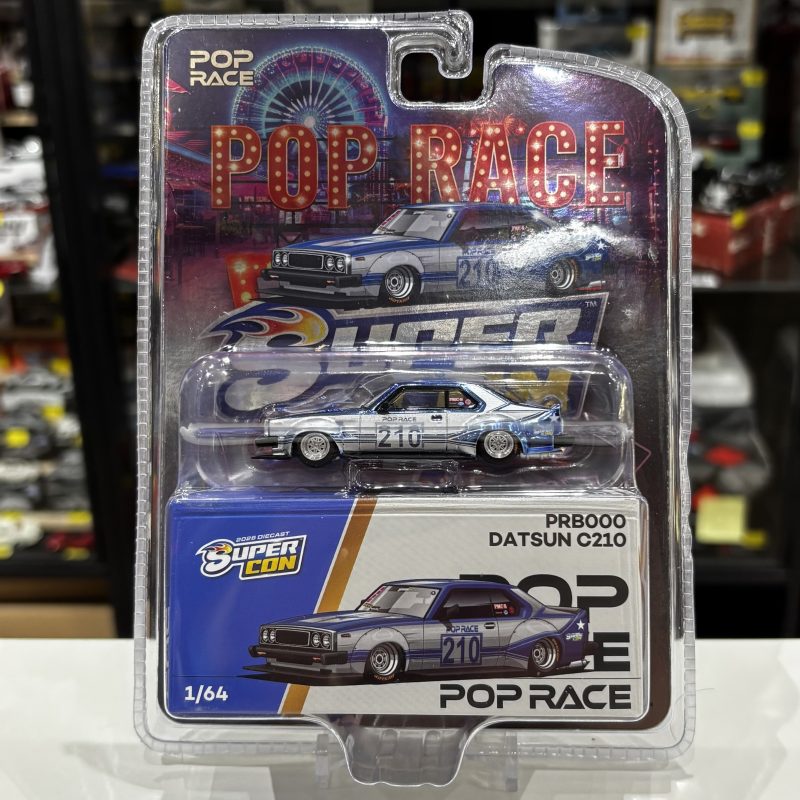 Pop Race PRB000 1:64 Datsun C210 chrome & blue Las Vegas Super Con