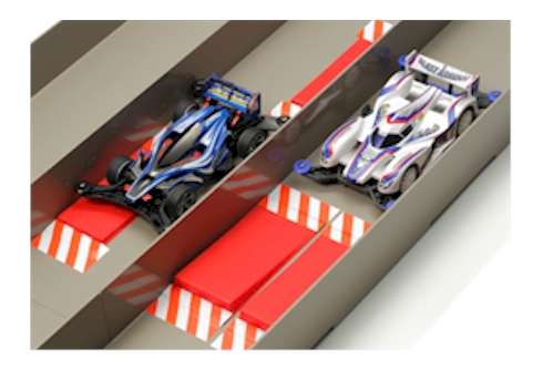 This set contains 2 each of ①H:5mm, W:49mm, L:120mm & ②H:10mm, W:55mm, L:120mm. Add these sections to your track for an extra challenge!